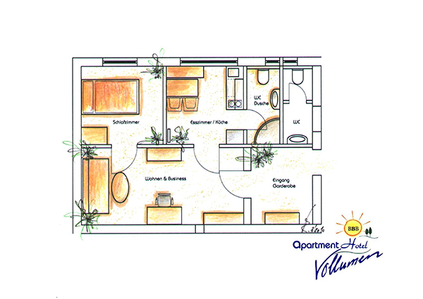 Das geräumige und geschmackvoll eingerichtete Apartment mit separatem Schlafraum und Küche, sowie schöner großer Dusche bietet alles, was Sie für Ihren geschäftlichen Aufenthalt bei uns benötigen.