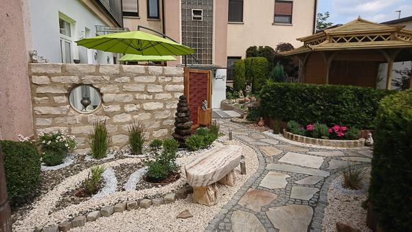 Wir laden Sie herzlich ein, die lauen Sommerabende oder einen sonnigen Nachmittag in unserem nach Feng-Shui gestalteten Garten zu genießen.